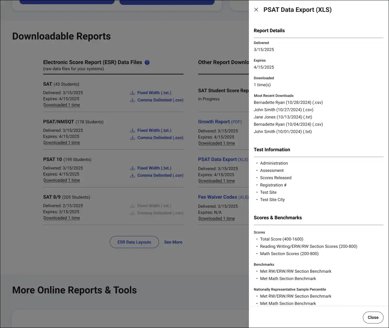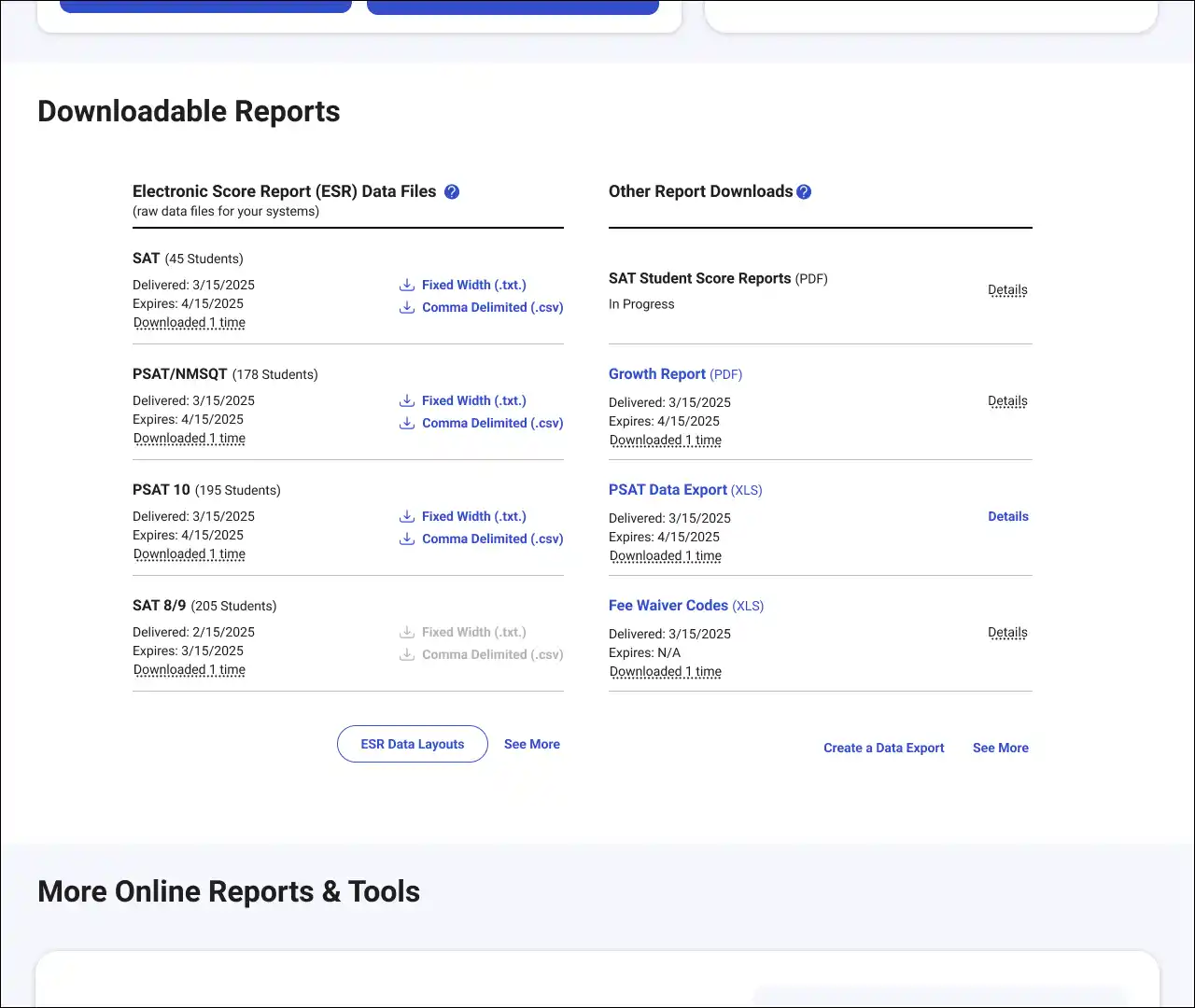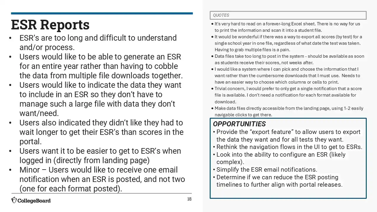 Users still couldn’t bulk download or easily filter reports by year, test date, or school. ESRs were hard to navigate and customize. Manual data stitching remained common.