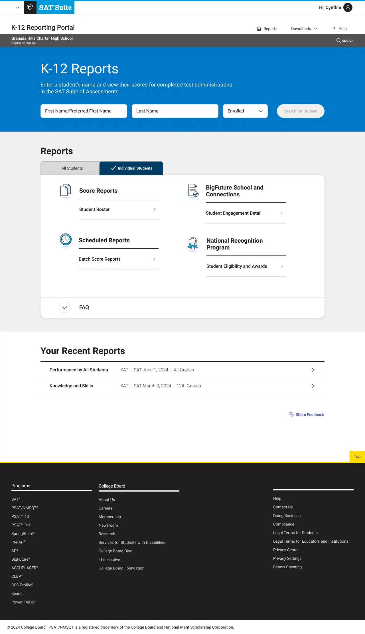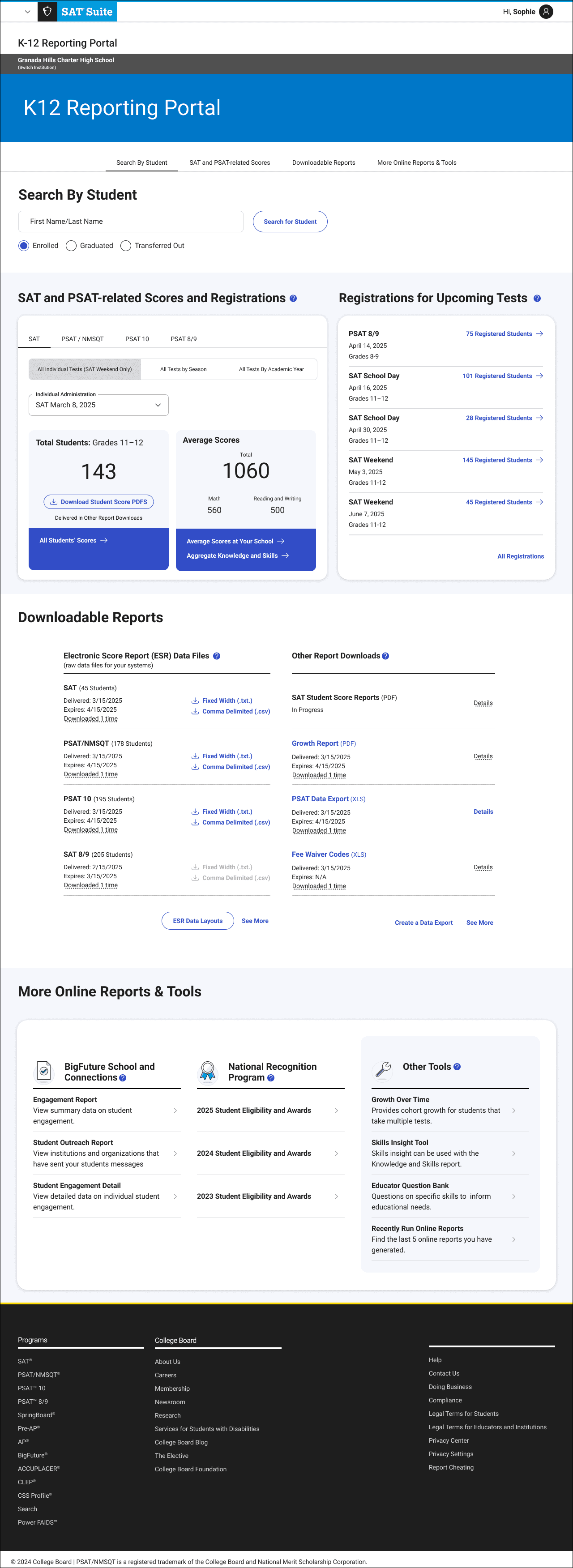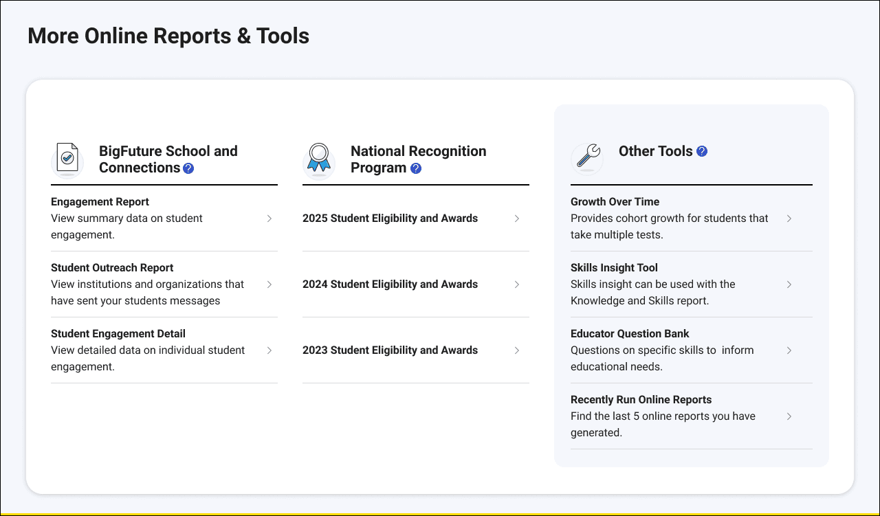 After launch, I created designed additional reports for BigFuture and the National Recognition Program.