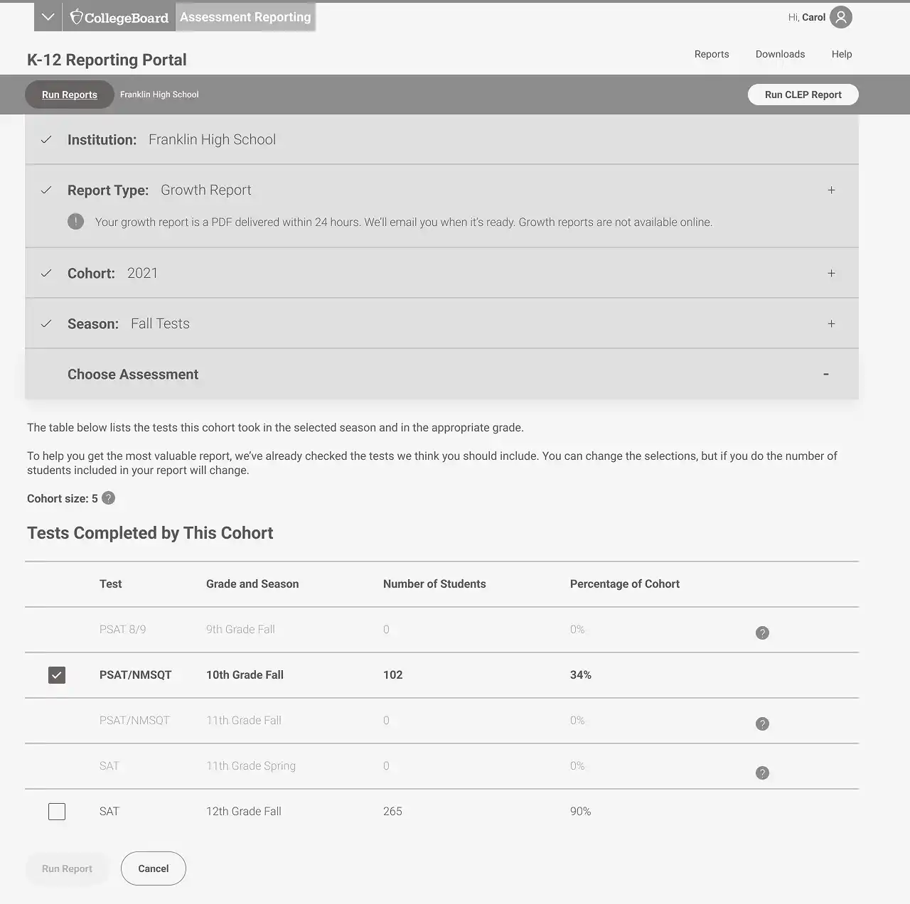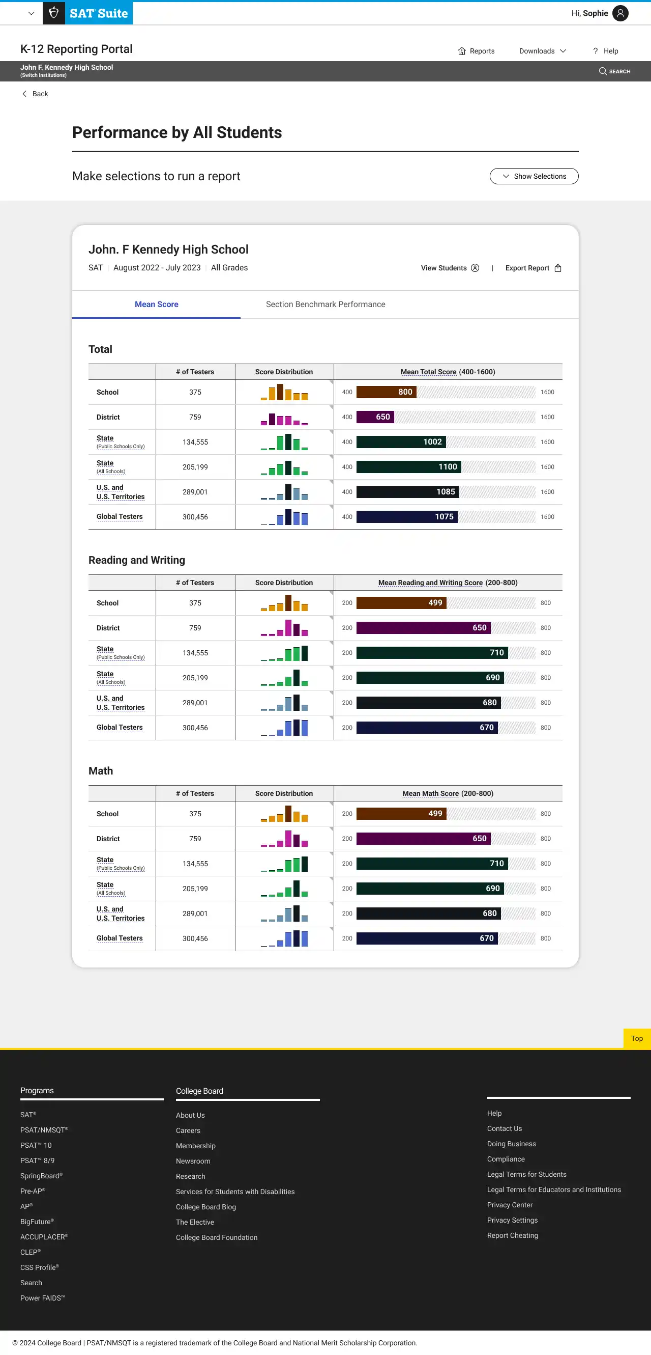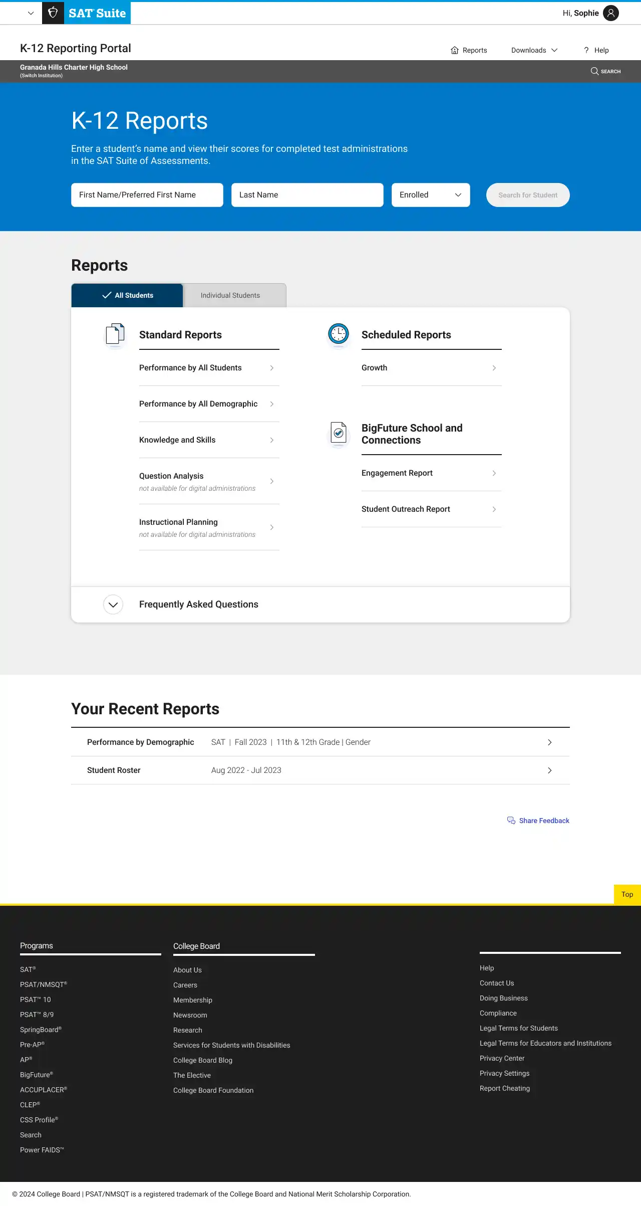 After launch, I created designed additional reports for BigFuture and the National Recognition Program.