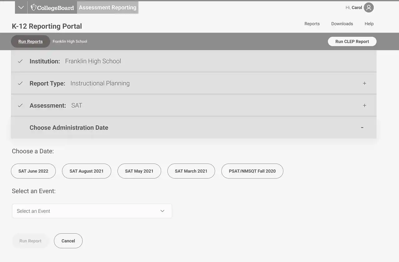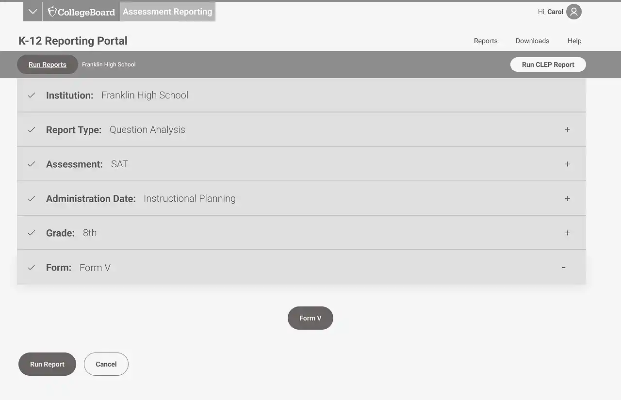 We redesigned the homepage so educators could immediately run their most recent reports with a single click—reflecting the feedback from our user interviews and surveys. From there, users could refine filters as needed, helping them get to actionable data faster and with less effort.