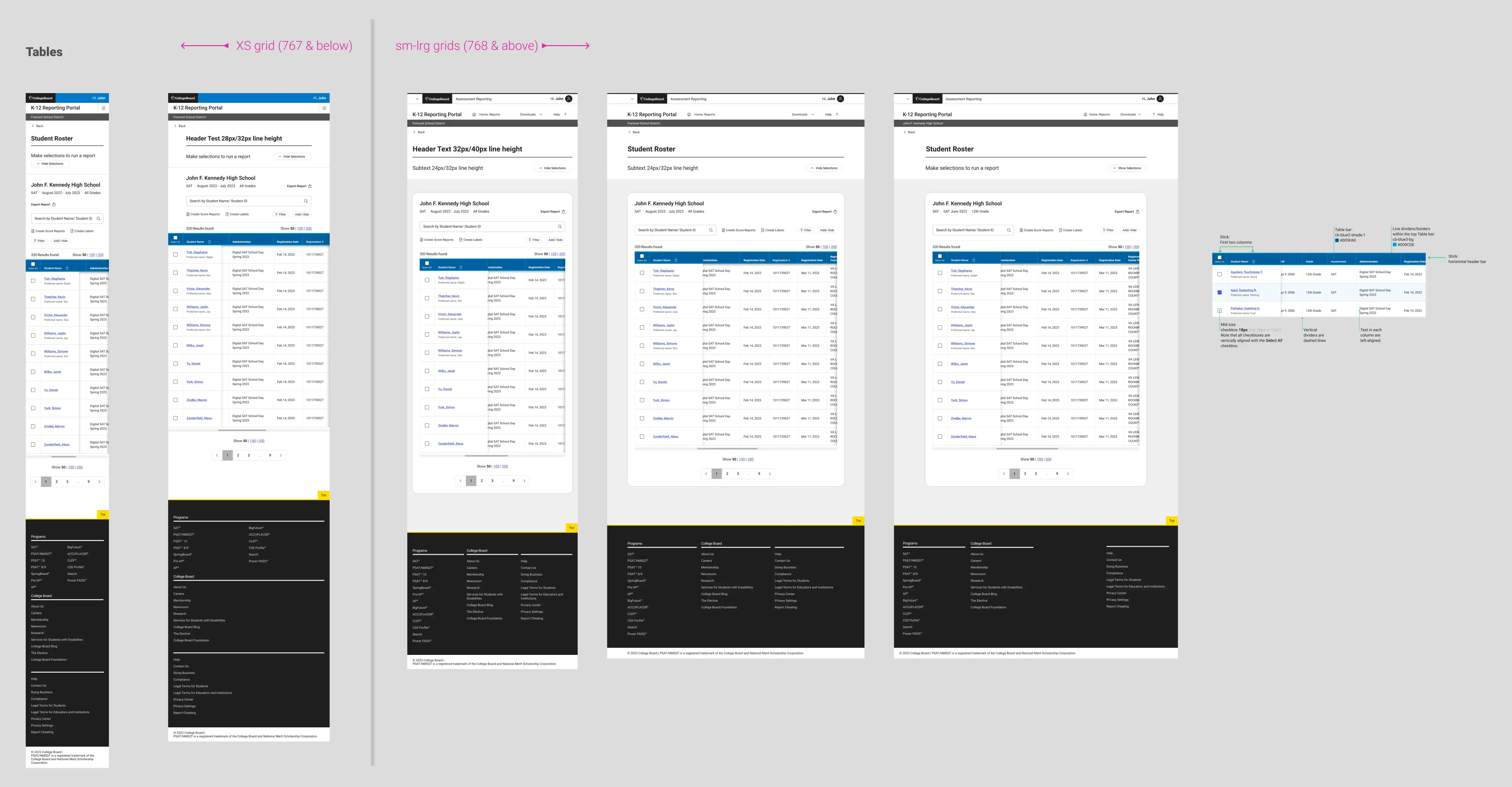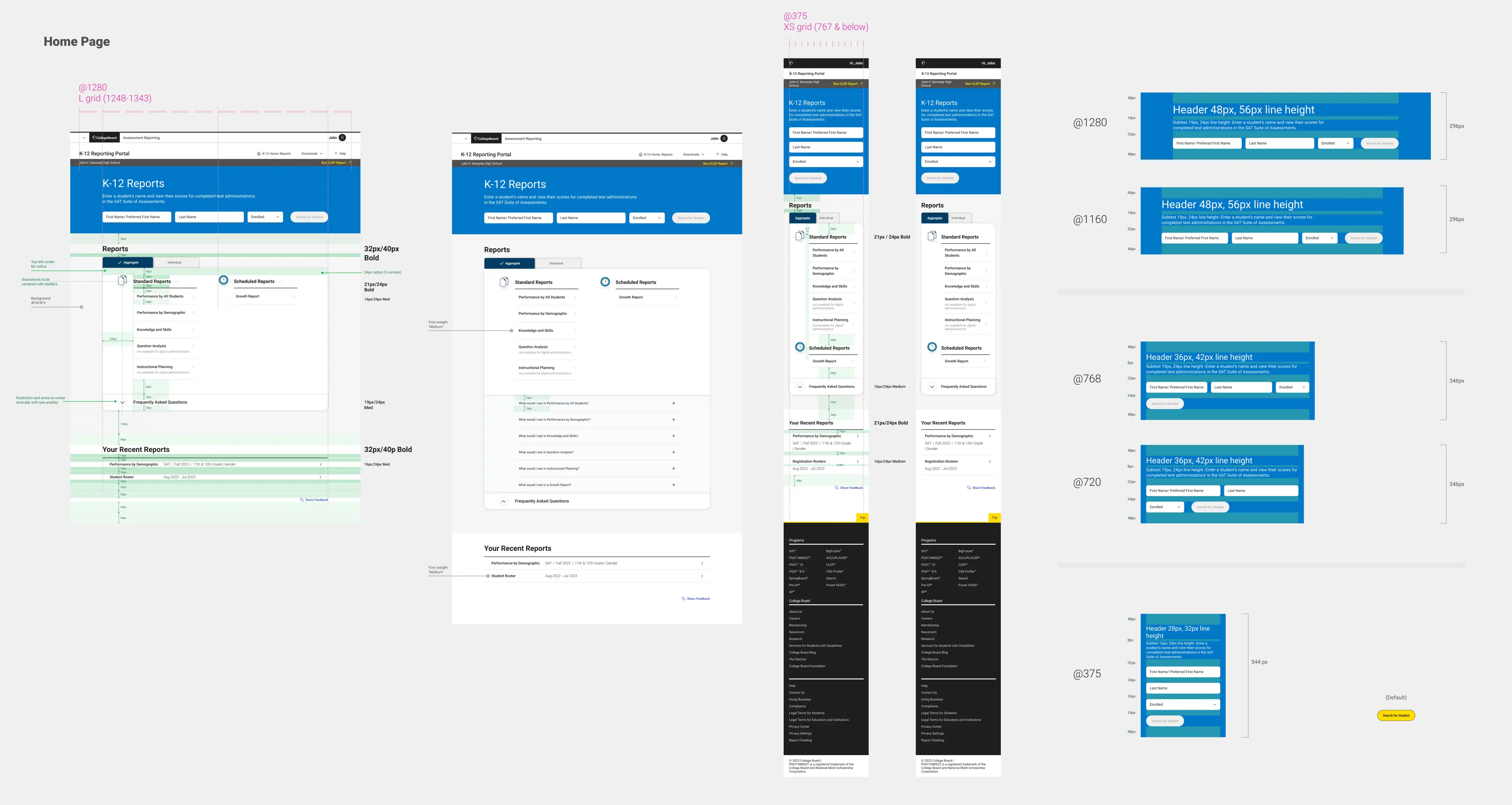 I worked with a visual designer to insure we were in compliance with College Board's design system Apricot. Leveraging existing components helped us scale quickly. The components that are created are vetted by our in-house accessibility expert to insure WCAG compliance. We worked together with development to insure that our designs were accessible for screen readers, and worked with color contrast and keyboard navigation.