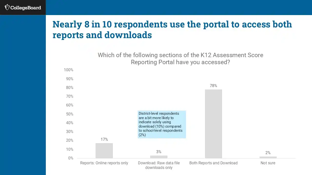 Educators continued to find reports too broad for instructional planning. The loss of item-level detail, like the Question Analysis Report, was a major gap. Skills Insight and Knowledge & Skills reports lacked actionable insights. The portal didn’t support year-over-year analysis or class-level insights. Teachers lacked visibility into specific skills and trends. Many created external visuals to track performance over time.