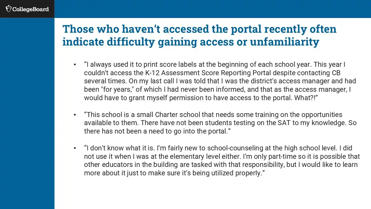 The 2023–24 digital SAT rollout changed how educators interact with data. Some of the issues of the legacy portal were: