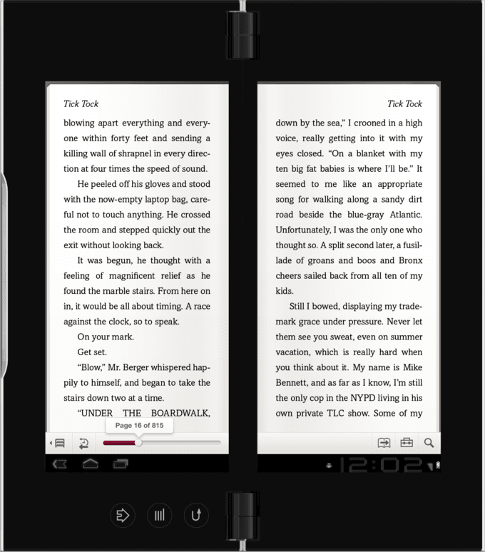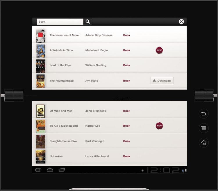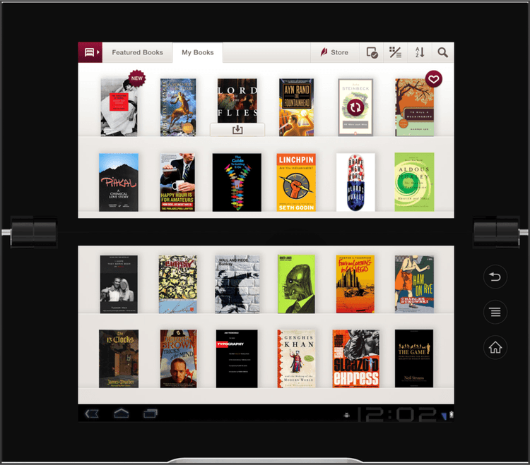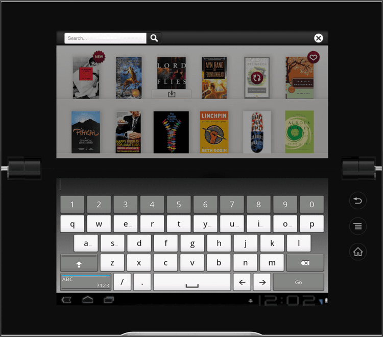 Every screen—library view, reading mode, and controls—was evaluated for how it rendered when the device was open or closed. Collaboration with teams in California and Japan was challenging, but we made it work. The end result was a reading experience that respected the metaphor of a book while adapting smartly to the Tablet P’s unconventional format.