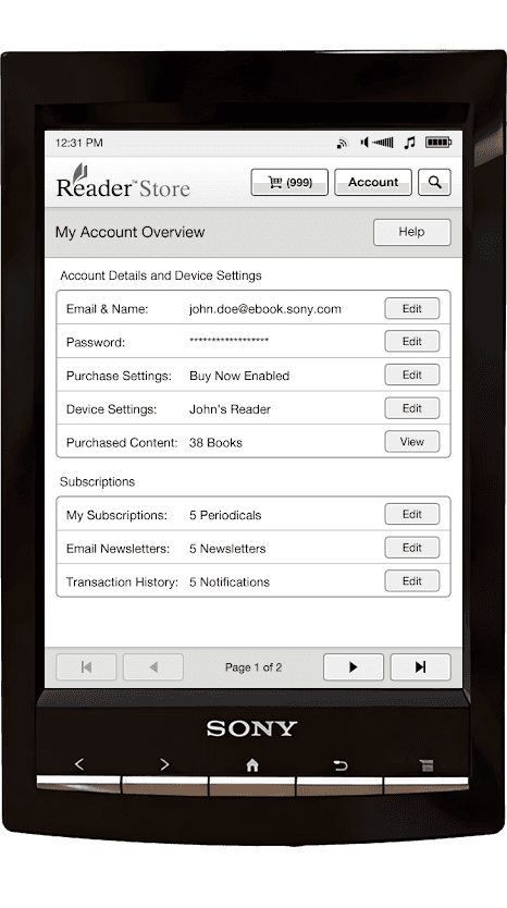 Sony PRS-T1 Reader Store App